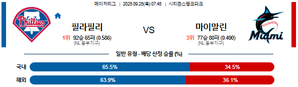 2025-09-25 07:45 MLB 필라델피아 vs 마이애미