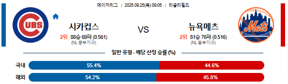 2025-09-25 09:05 MLB 시카고C vs 뉴욕메츠