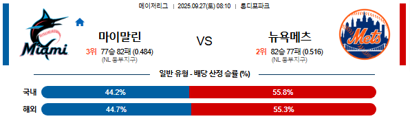 2025-09-27 08:10 MLB 마이애미 vs 뉴욕메츠