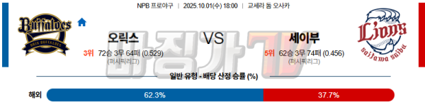 【NPB프로야구】10월01일 오릭스 vs 세이부