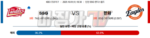 【KBO프로야구】10월01일 SSG vs 한화