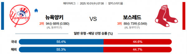 10월 1일 MLB 뉴욕양키 vs 보스레드