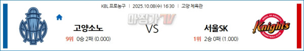 【KBL프로농구】10월08일 고양 소노 vs 서울 SK