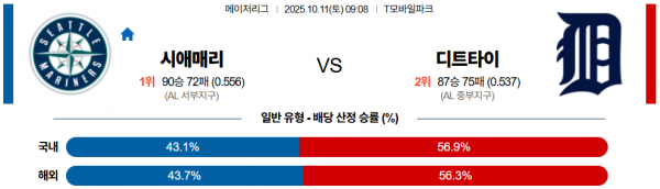 2025-10-11 09:08 MLB 시애틀 vs 디트로이트