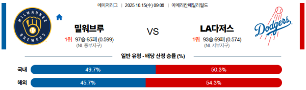 2025-10-15 09:08 MLB 밀워키 vs LA다저스