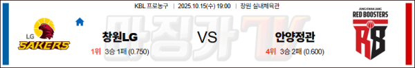 【KBL프로농구】10월15일 창원 LG vs 안양 정관장