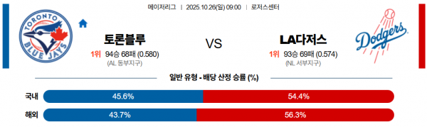 10월 26일 MLB 토론블루 vs LA다저스
