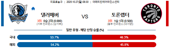 2025-10-27 08:30 NBA 댈러스 매버릭스 vs 토론토 랩터스
