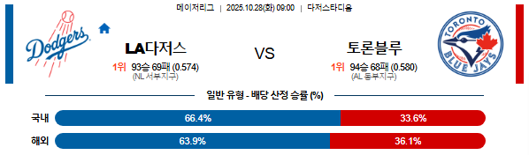 2025-10-28 19:00 MLB LA다저스 vs 토론토