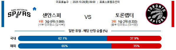 2025-10-28 09:00 NBA 샌안토니오 스퍼스 vs 토론토 랩터스