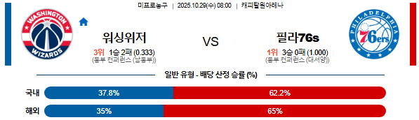 2025-10-29 08:00 NBA 워싱턴 위자드 vs 필라델피아 76ERS