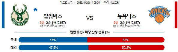 2025-10-29 09:00 NBA 밀워키 벅스 vs 뉴욕 닉스