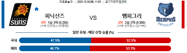 2025-10-30 11:00 NBA 피닉스 선즈 vs 멤피스 그리즐리즈