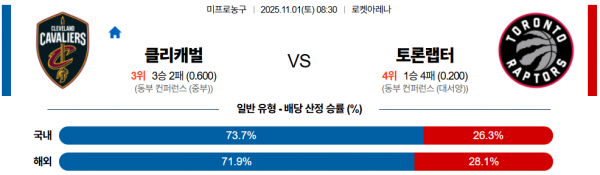 11월 1일 NBA 클리캐벌 vs 토론랩터
