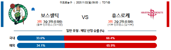 2025-11-02 09:00 NBA 보스턴 셀틱스 vs 휴스턴 로켓츠