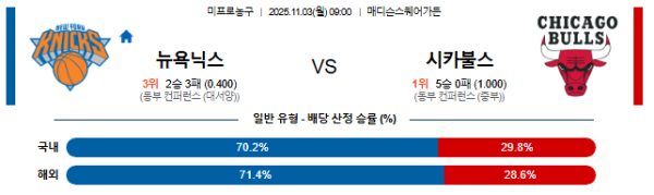 2025-11-03 09:00 NBA 뉴욕 닉스 vs 시카고 불스