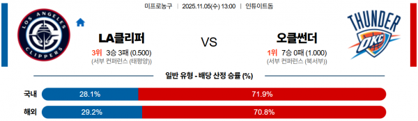 11월 5일 NBA LA클리퍼 vs 오클썬더