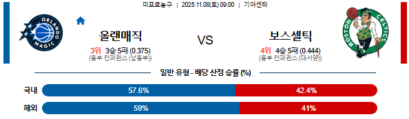 2025-11-08 09:00 NBA 올랜도 매직 vs 보스턴 셀틱스
