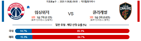 2025-11-08 09:00 NBA 워싱턴 위자드 vs 클리블랜드 캐벌리어스