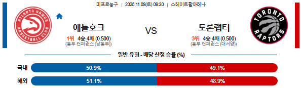 2025-11-08 09:30 NBA 애틀랜타 호크스 vs 토론토 랩터스
