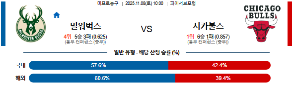 2025-11-08 10:00 NBA 밀워키 벅스 vs 시카고 불스