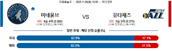 2025-11-08 10:00 NBA 미네소타 울브스 vs 유타 재즈