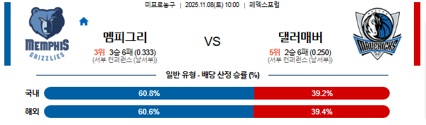 2025-11-08 10:00 NBA 멤피스 그리즐리즈 vs 댈러스 매버릭스