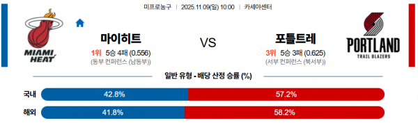 11월 9일 NBA 마이히트 vs 포틀트레