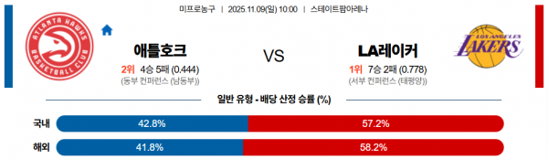 11월 9일 NBA 애틀호크 vs LA레이커