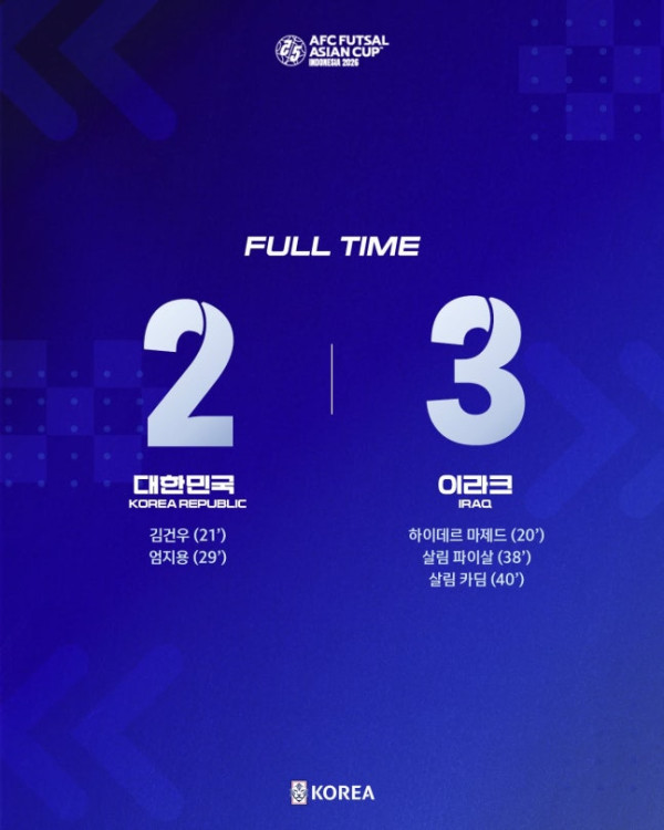 파울로 페르난데스 감독이 이끄는 한국은 지난 29일 인도네시아 자카르타에서 열린 2026 아시아축구연맹(AFC) 풋살 아시안컵 조별리그 A조 2차전에서 이라크에 2-3 역전패를 당하며 사실상 조별리그 탈락이라는 성적표를 받아 들었다.