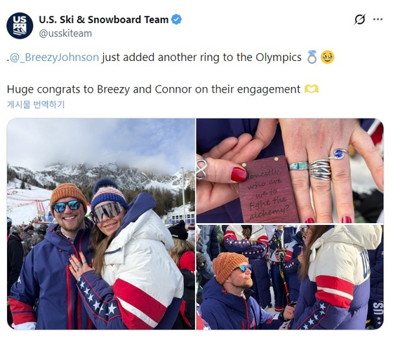 미국 여자 알파인 스키의 간판 선수인 존슨(30)은 2026 밀라노·코르티나담페초 동계 올림픽에서 금메달 못지않게 잊지 못할 경험을 했습니다. 경기장 한복판에서 오래된 연인 코너 왓킨슨에게 청혼을 받은 겁니다.