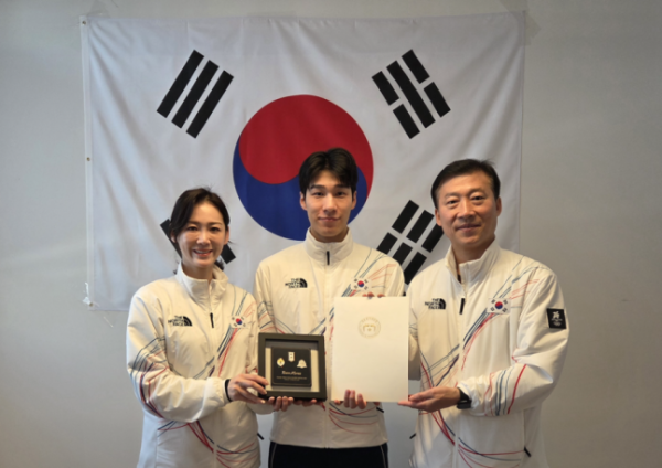 15일 현지시간 최가온과 황대헌은 이수경 선수단장으로부터 이 대통령의 축전을 전달받았다.