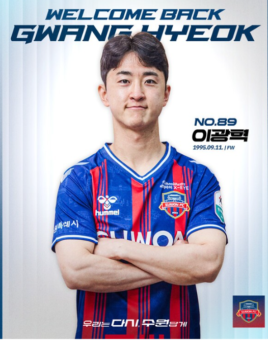 [오피셜] 마침내 사회복무 마치고 복귀했다...수원FC, 베테랑 윙어 이광혁 가세 "어서 팬들과 만나고 파"
